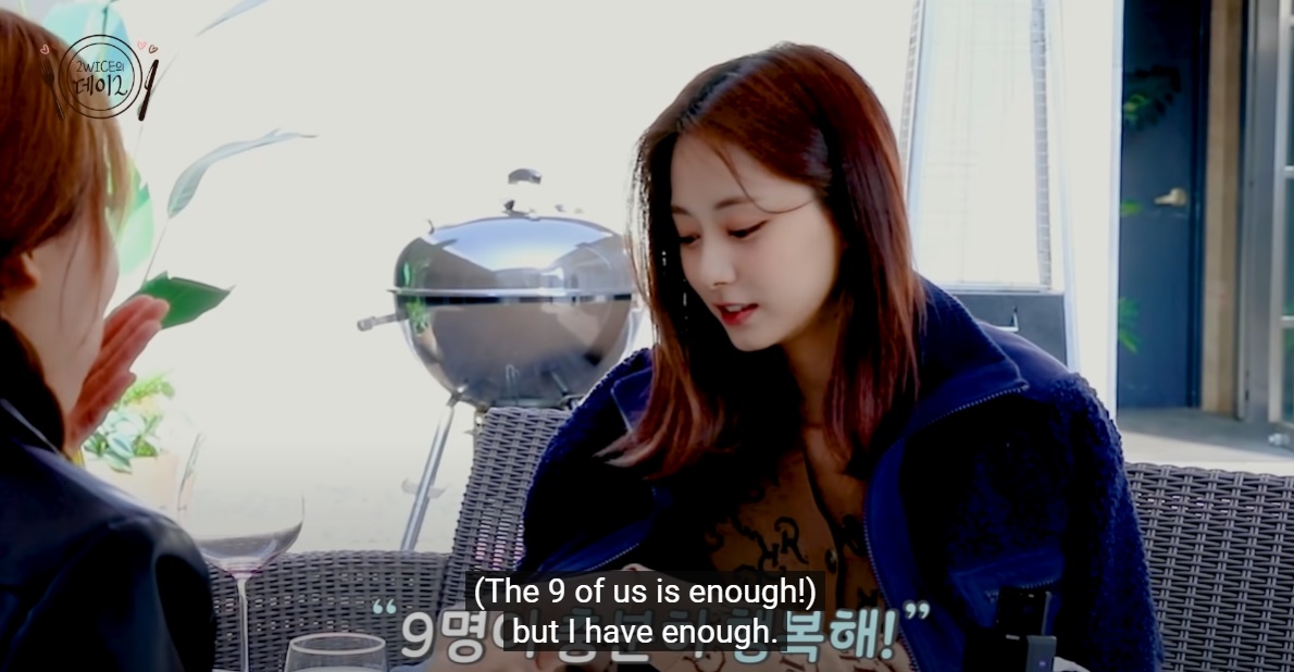於是,子瑜立刻說出了「有TWICE成員夠了!!」因為有最能理解自己的成員,所以感覺很幸福。