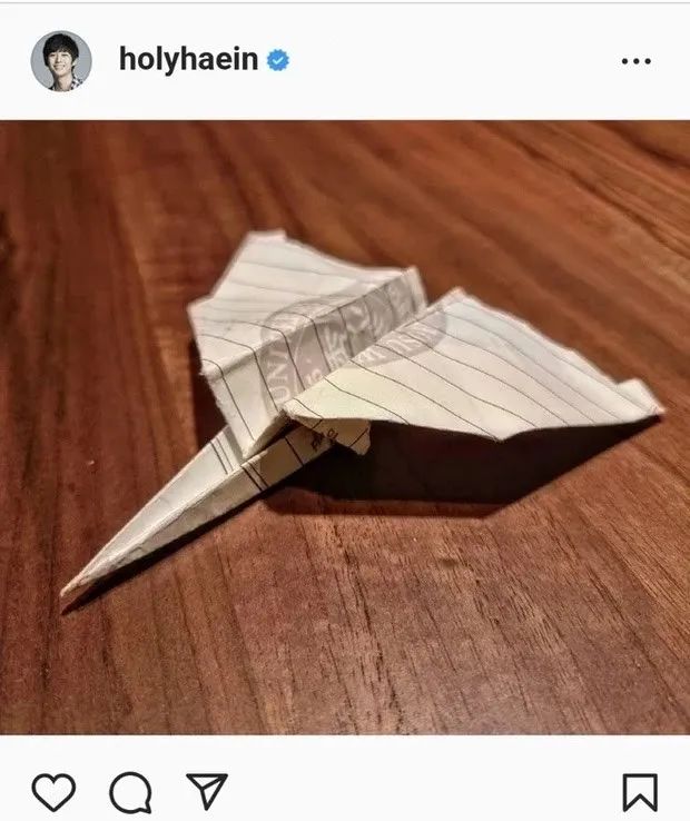 丁海寅將在智秀拍攝《雪降花》折疊的紙飛機保管了6個月以上,在智秀27歲生日那天上傳到Ins。