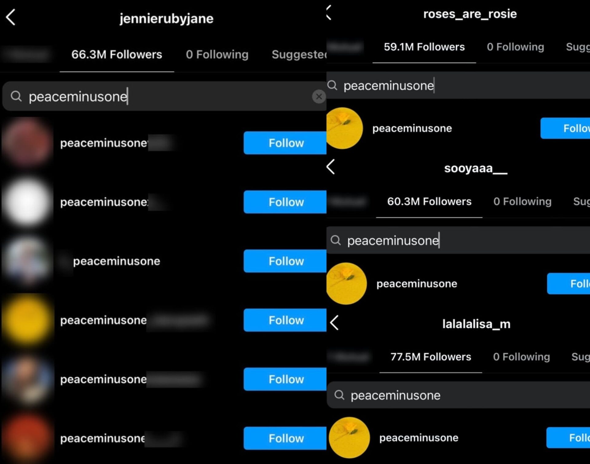 權志龍除了有INS帳號@xxxibgdrgn 外,他還有一個私人帳號@peaceminusone。有網友發現這個私人帳號取消追踪了JENNIE,但BLACKPINK其他成員仍然在關注中,該網友還公開了截圖比對。