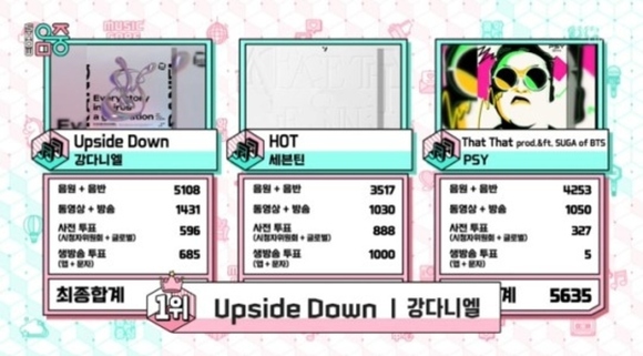 今天(4日)在韓國播出的MBC《Show! 音樂中心》節目中,姜丹尼爾在沒有參加該節目的情況下,透過主打歌《Upside Down》獲得了第一位。