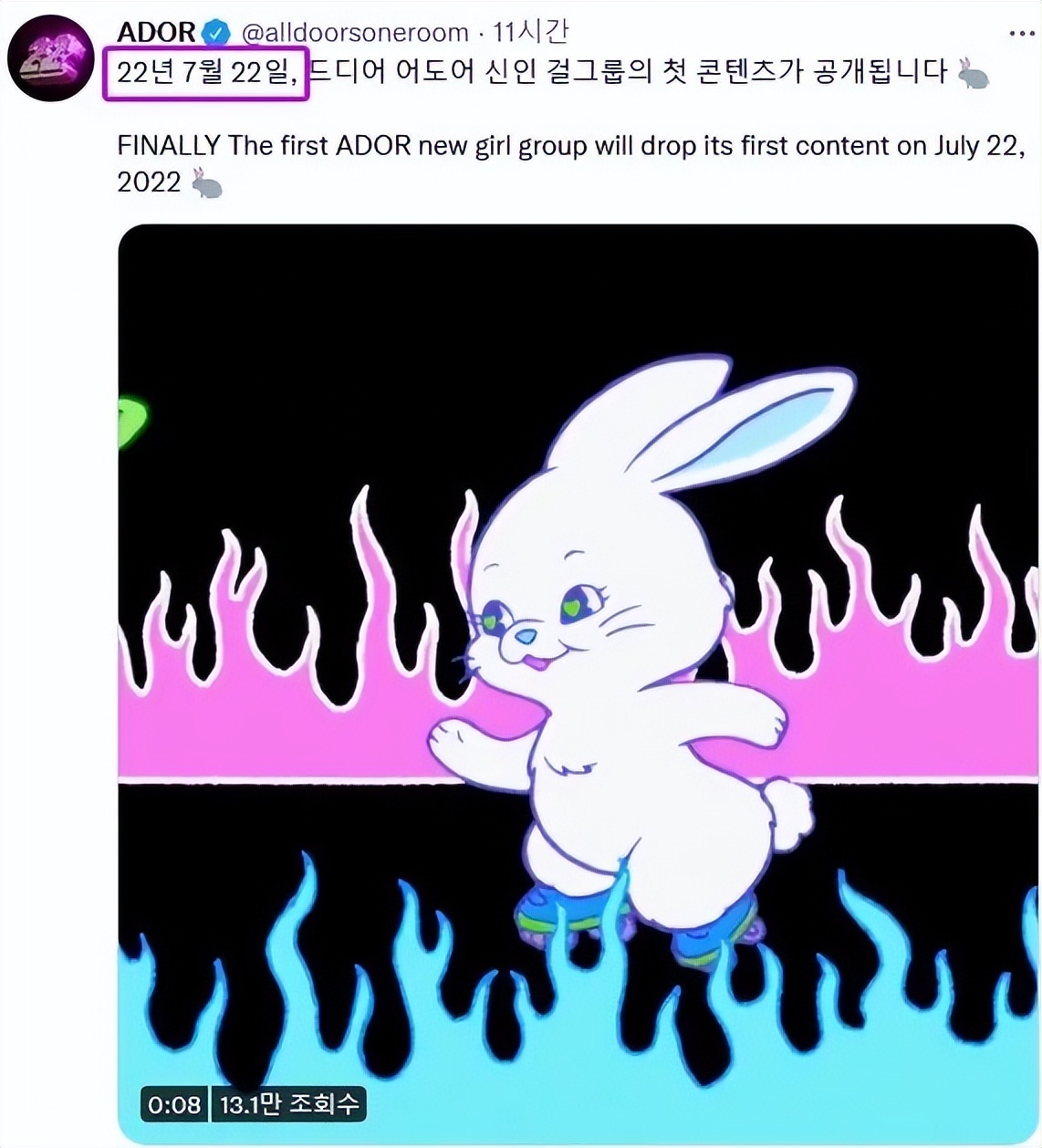 ADOR官方推特表示,7月22日將公開ADOR新人女團的首個內容物。