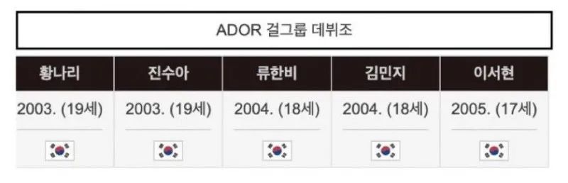 那麼ADOR X HYBE新人女子組合出道組成員的名字(出生年度)是?