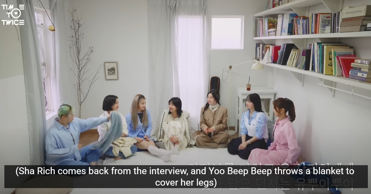 繼定延之後,志效也把自己的毯子讓給了定延,Momo也給旁邊的多賢蓋上毯子等,展開了互相讓出毛毯的競爭。成員們全都展現了溫柔,引發了現場一陣爆笑。