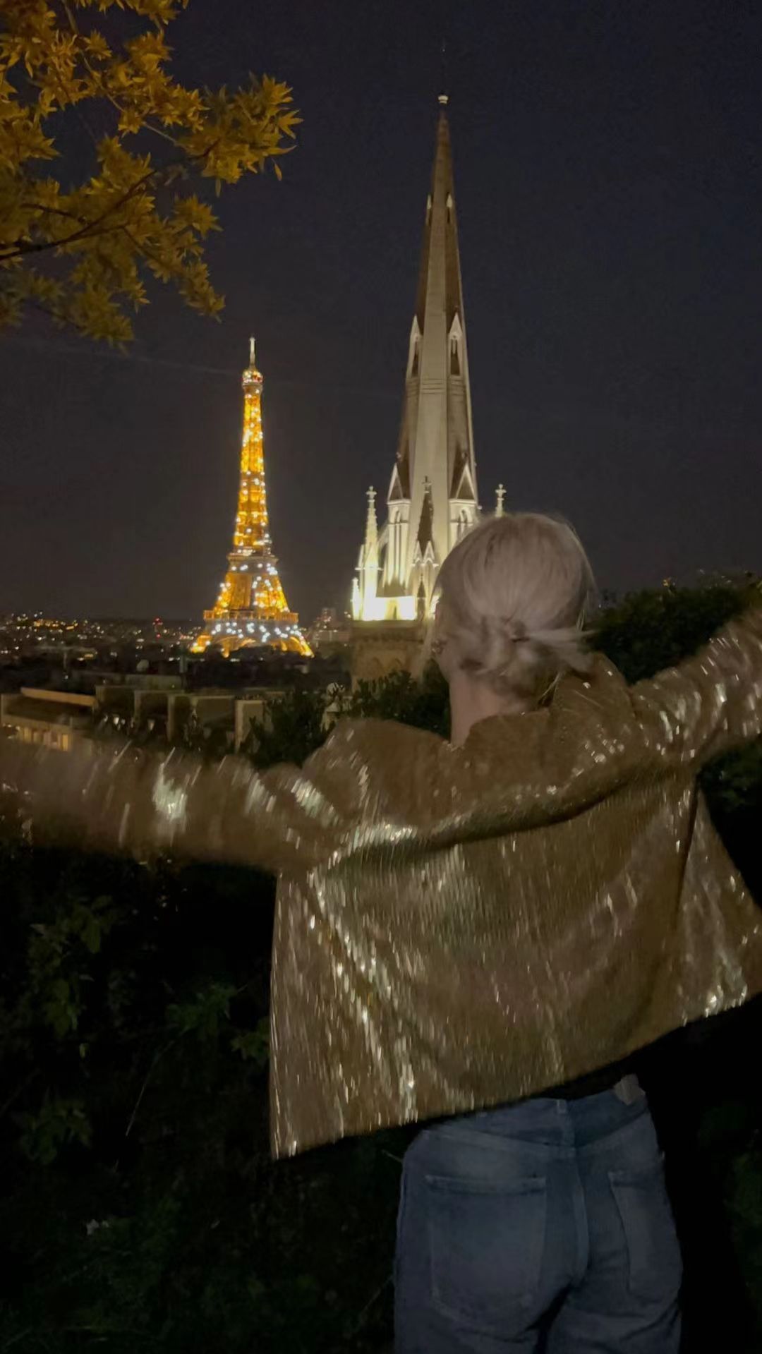 在公開的照片中,Lisa身穿閃亮的金色上衣,以埃菲爾鐵塔為背景,擺出各種優美的姿勢,笑容燦爛,Lisa的美貌和可愛的表情讓人如沐春風,展示了她人心動的靈動與美麗和奢華的視覺效果,其獨特的清新可愛的氛圍脫穎而出。