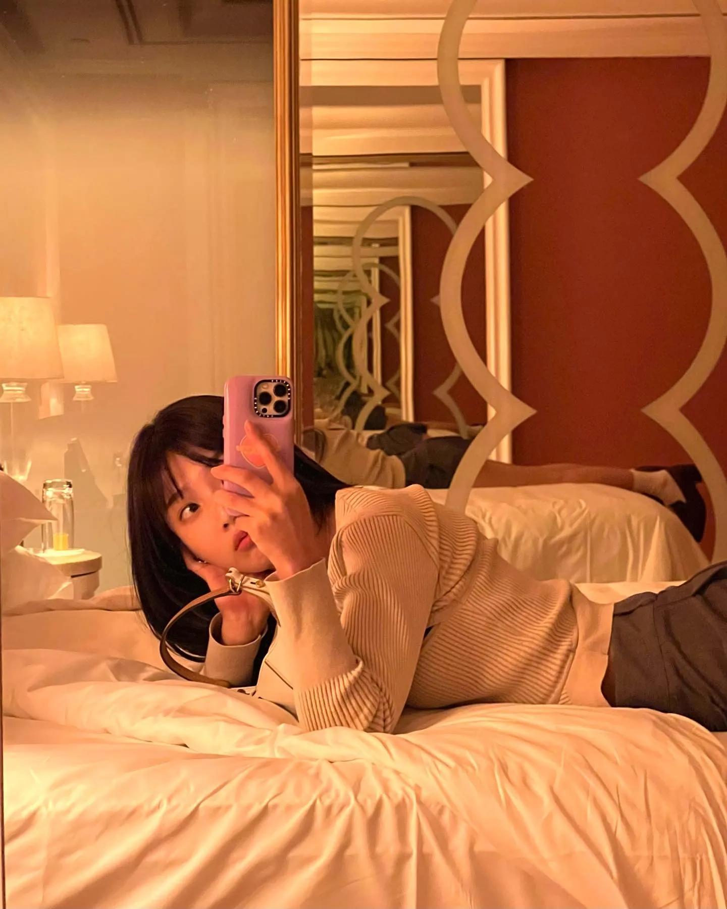 在公開的照片中,喬伊正在床上擺出各種姿勢拍照,短裙搭配微微露出肚皮的T卹,展現了她的時尚感,儘管她躺在床上,擺出舒舒服服地姿勢拍攝照片,但她苗條修長的身材卻依舊能讓人羨慕不已。