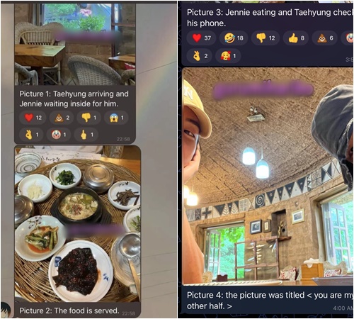 該網友透過Telegram的群聊表示:「第一張是Jennie在等待金泰亨的到來、第二張是料理照片」。