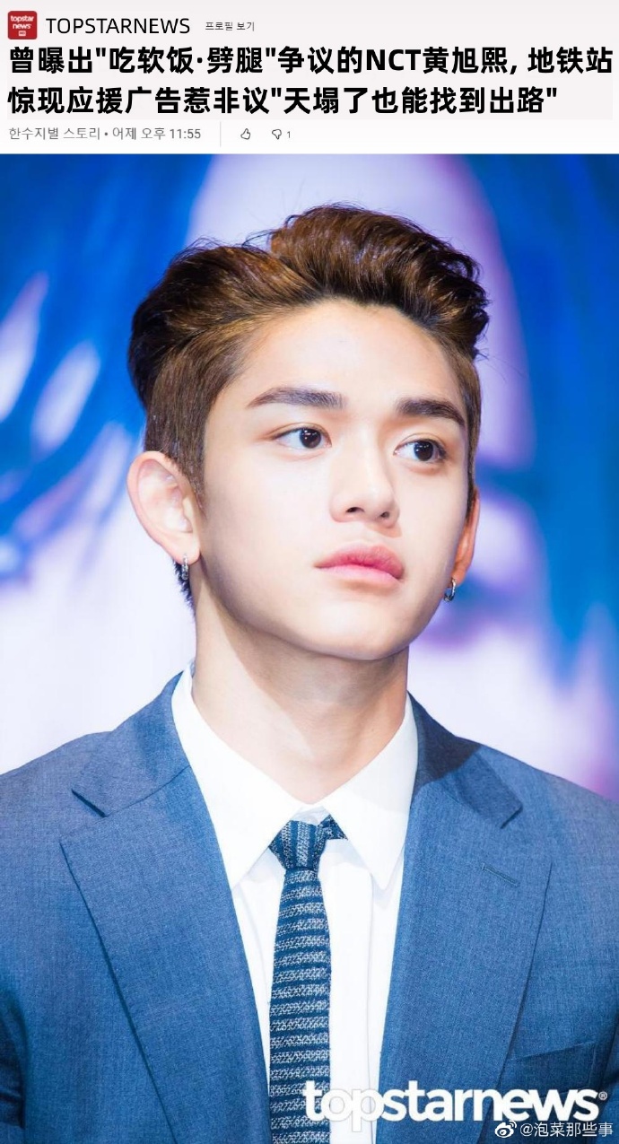 NCT黃旭熙突然在韓國進行造勢,甚至直接在首爾森林地鐵站出現了他的電子看板應援廣告,至於應援詞則是:“就算天塌了也能找到出路,就算天塌了太陽依舊閃耀”,不難看出這肯定是中國粉絲的手筆,因為韓國的應援詞和中國的差別非常大,很快中國的粉絲便開始大規模控評,目的就是想讓黃旭熙重回NCT小分隊威神V和superM。