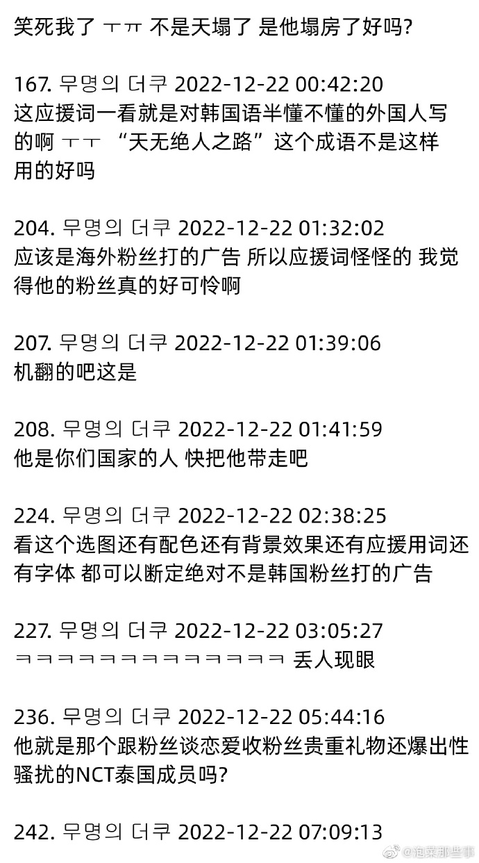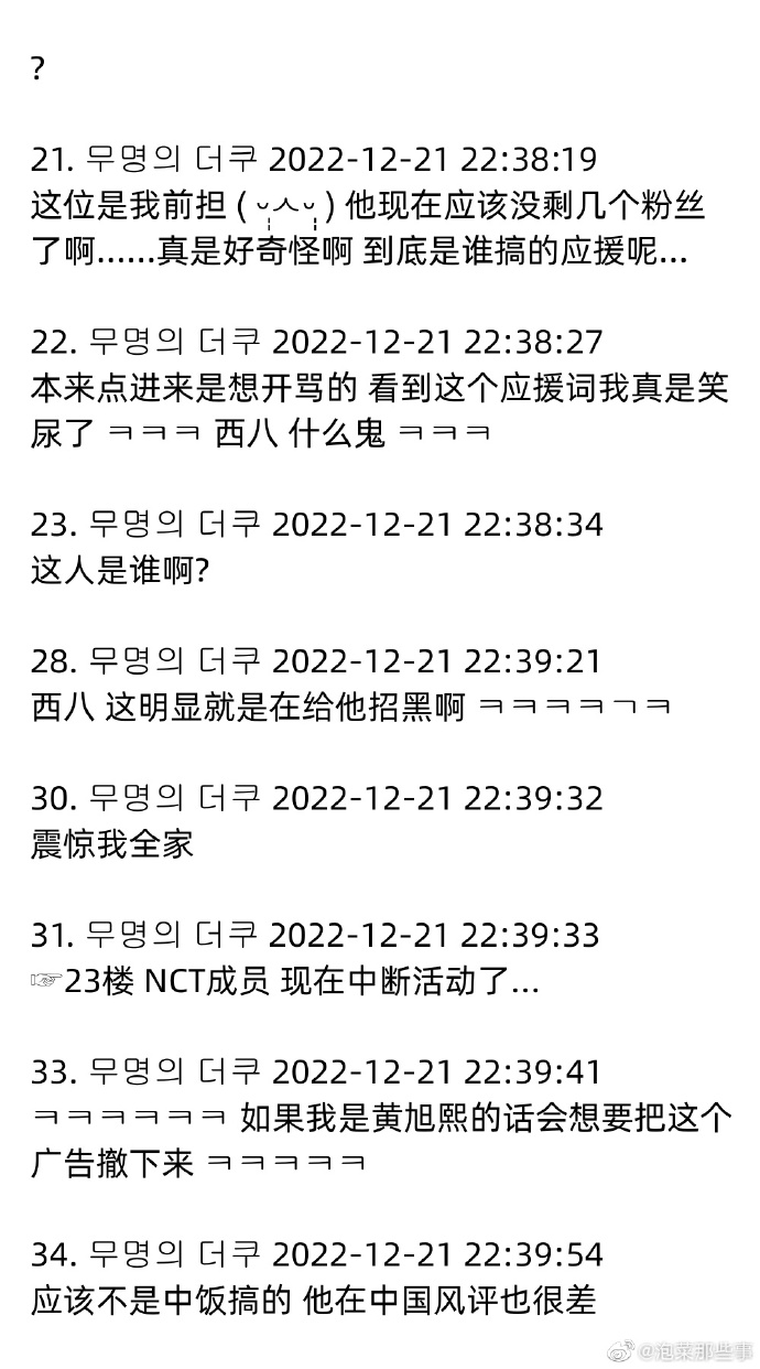 去看了一下,但凡搬運和評價此次應援行動的網紅基本都是黃旭熙粉絲給攻擊了,甚至就連那些不允許控評的評論區,也出現了大量的文字控評,這些人一看就是急了,他們表示黃旭熙就是很火,甚至說黃旭熙是流量密碼,真的直接看笑了,如果黃旭熙真的是流量密碼,那SM娛樂為什麼不碰他呢?是因為流量太大嗎?