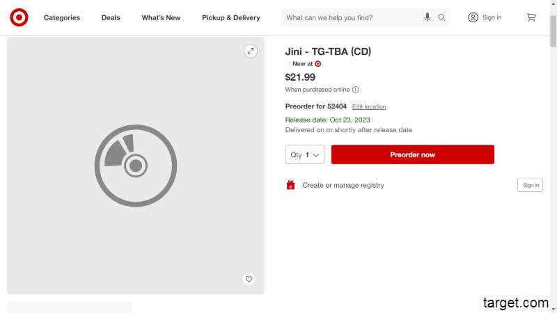 在Target網站上列出的名為jini的專輯的詳細情況。(圖)