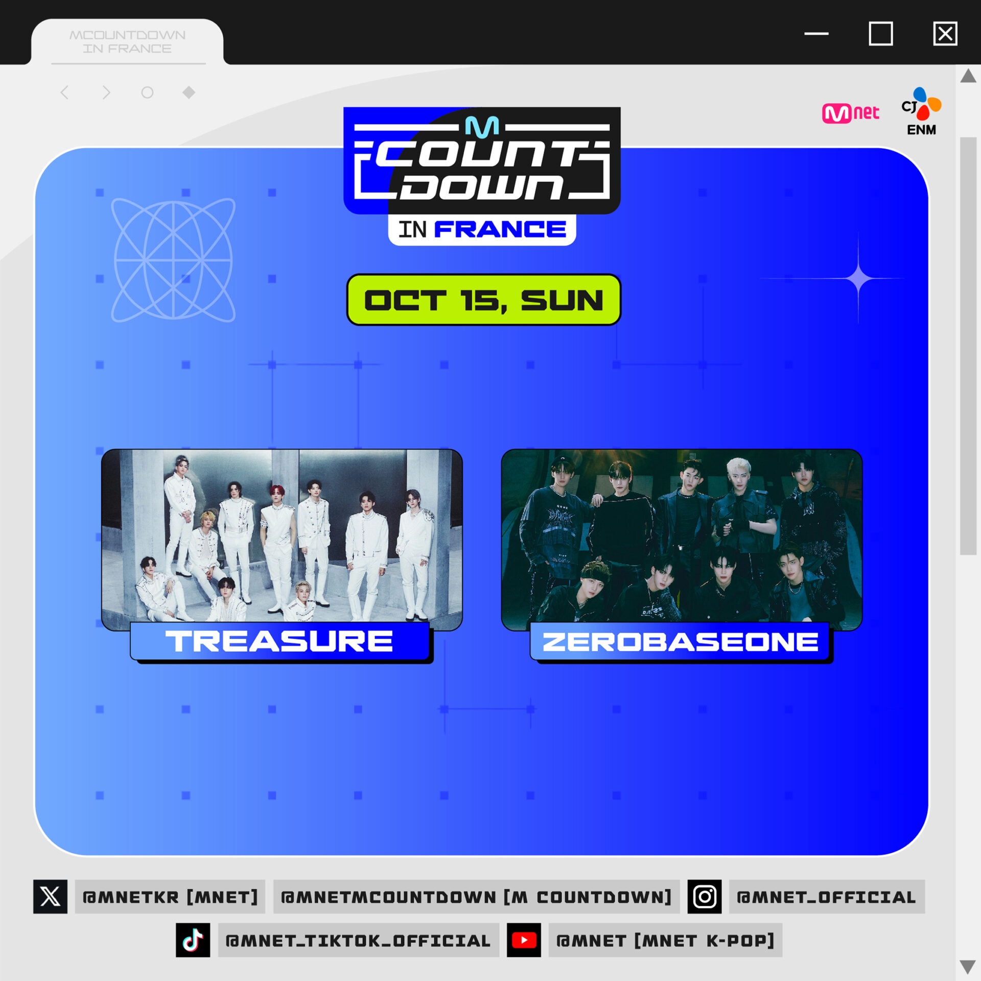 10月15日,在法國巴黎歐洲最大規模的演出場地巴黎拉德芳斯體育館舉行的「M COUNTDOWN IN FRANCE」上,實力兼備的K-POP藝人將出擊。