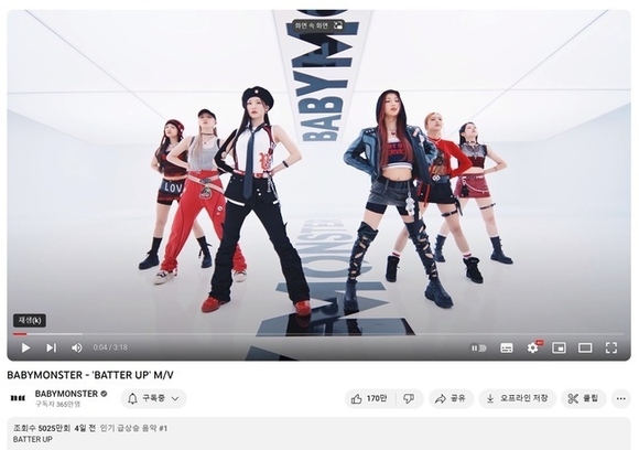 YG娛樂公司的新人女子組合BABYMONSTER透過出道曲《BATTER UP》的MV再次刷新了K-POP的新紀錄。