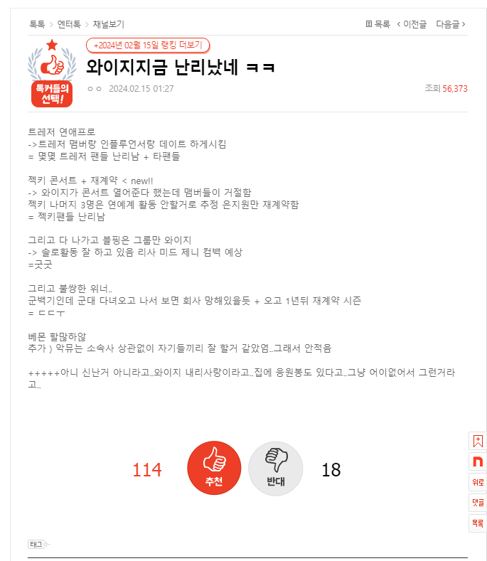 「並不是發文者很興奮,他們只是陳述了事實…即使我是粉絲,我也很擔心…TREASURE和甚至BABYMONSTER可能會勉強度過難關,但之後的團體我不會成為粉絲…」