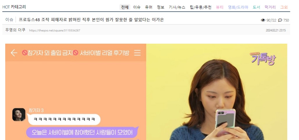 李佳恩現身YouTube頻道「재미로웹」,回顧了當時的「Produce 48」操控事件。