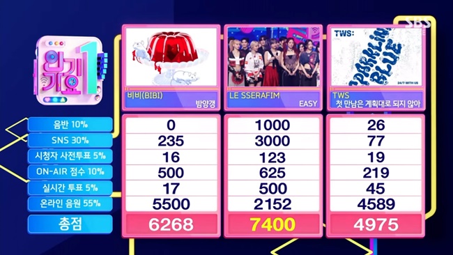 LE SSERAFIM憑藉新曲「Easy」在《人氣歌謠》中獲得了1位,在音樂節目中贏得了第五冠。