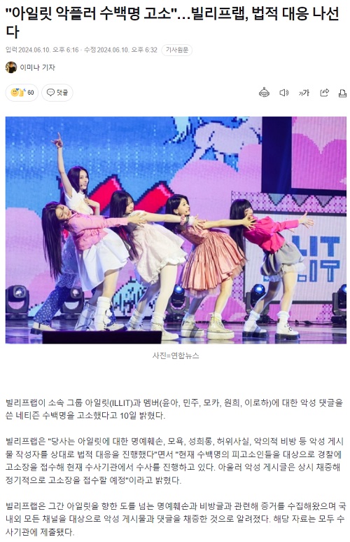 另一方面,近日BELIFT LAB宣布已對發布惡意評論ILLIT的數百名網友提起訴訟。