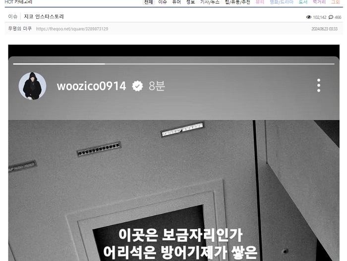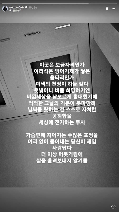 23日,Zico透過自己的Instagram動態,公開了一張天花板的照片,並附上了一段文字。