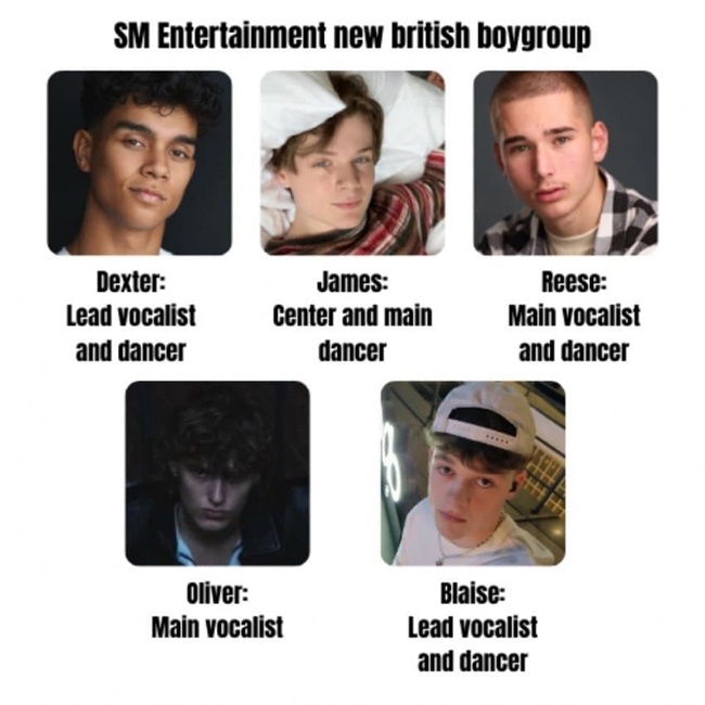 SM娛樂正在與英國娛樂公司「MOON & BACK (M&B)」合作,準備推出一個男子團體。目前已公開了據傳是該團體成員的五人照片。
