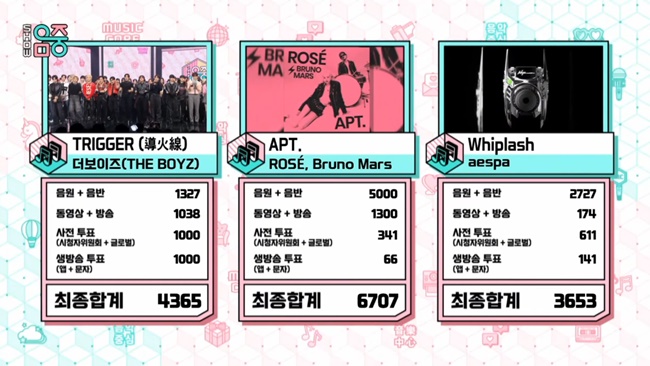 韓國女團, 韓國男團Rosé擊敗aespa和THE BOYZ在《音樂中心》奪得1位!朴軫永、VIVIZ等回歸舞台BLACKPINK成員Rosé憑藉與火星人布魯諾合作… KPOPDAYS2024 年 11 月 9 日